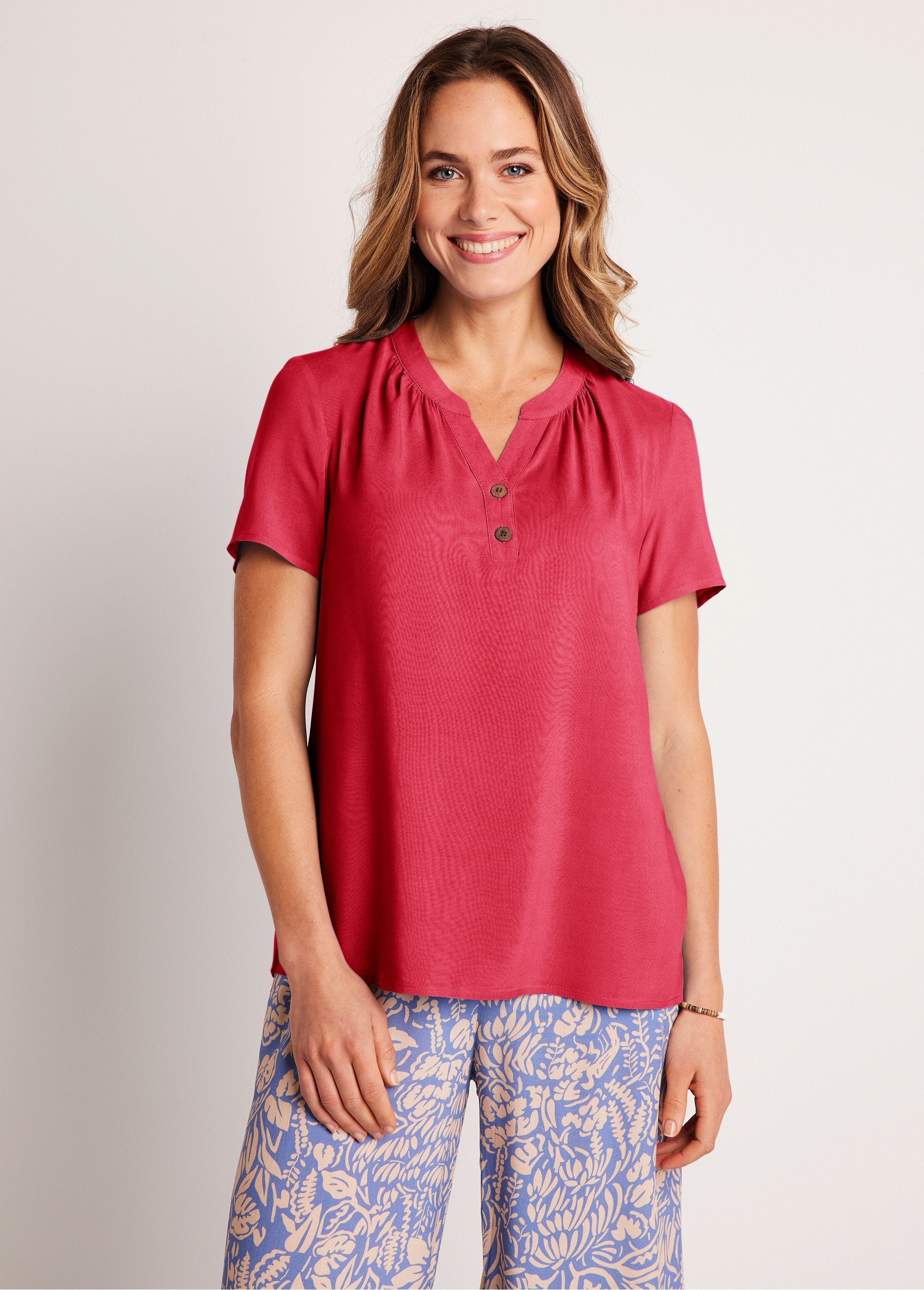Vrouwentunieken zijn onmisbare stukken geworden in de hedendaagse mode. Verkrijgbaar in verschillende stijlen en maten, voor elk wat wils. Of je nu kiest voor een tuniek met mouwen voor koelere dagen of voor een tuniek met print om je outfit een vleugje kleur te geven, de mogelijkheden zijn eindeloos. In combinatie met jeans of leggings bieden deze tunieken een flatterend, elegant silhouet voor elke gelegenheid, van maandag tot zaterdag. Blouses en tunieken gaan ook perfect samen om een chique, casual look te creëren.