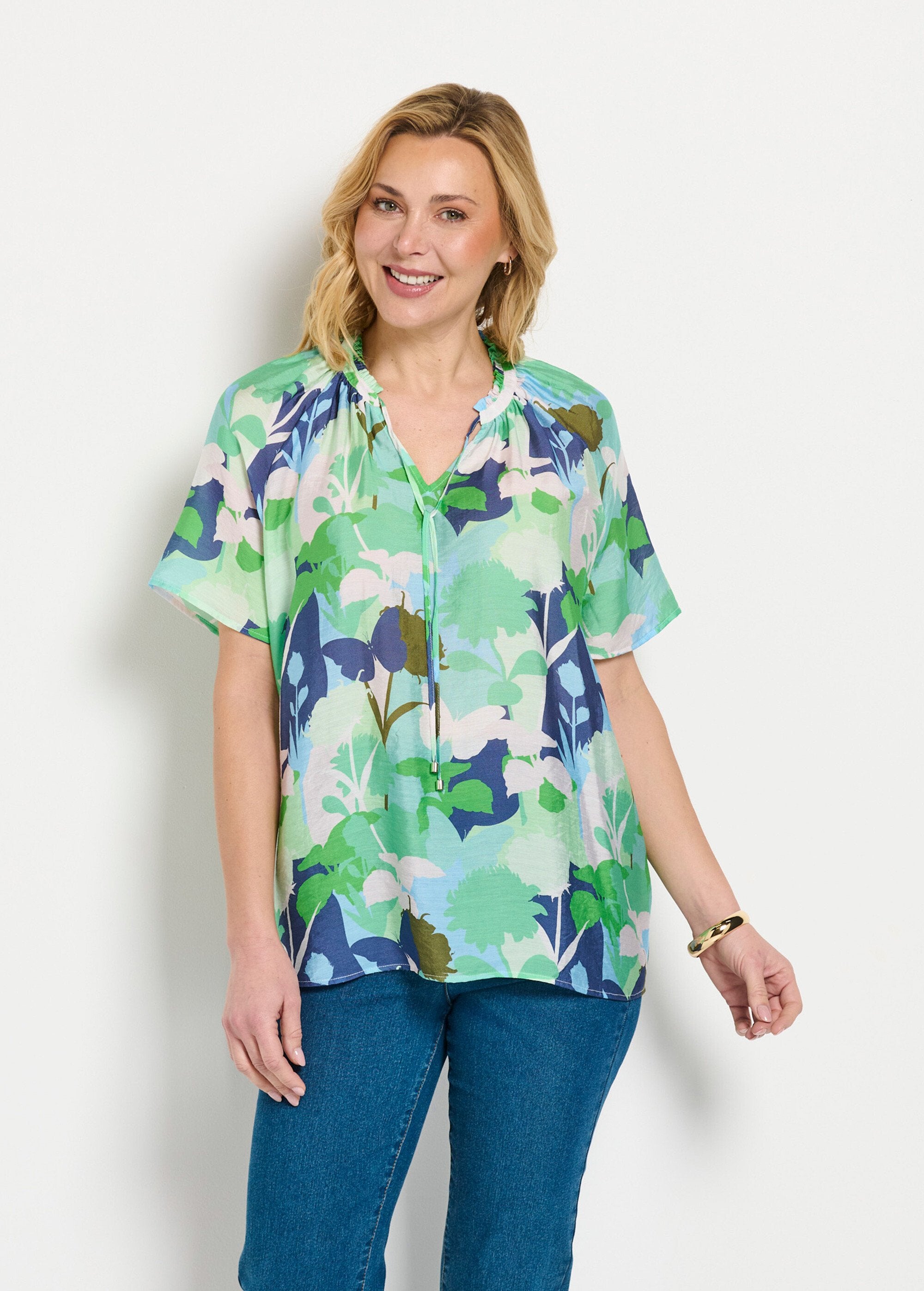 Gebloemde_voile_lange_tuniek_met_V-hals_met_ruches_Bleu_et_vert_FA1_slim Gebloemde_voile_lange_tuniek_met_V-hals_met_ruches_Bleu_et_vert_DO1_slim