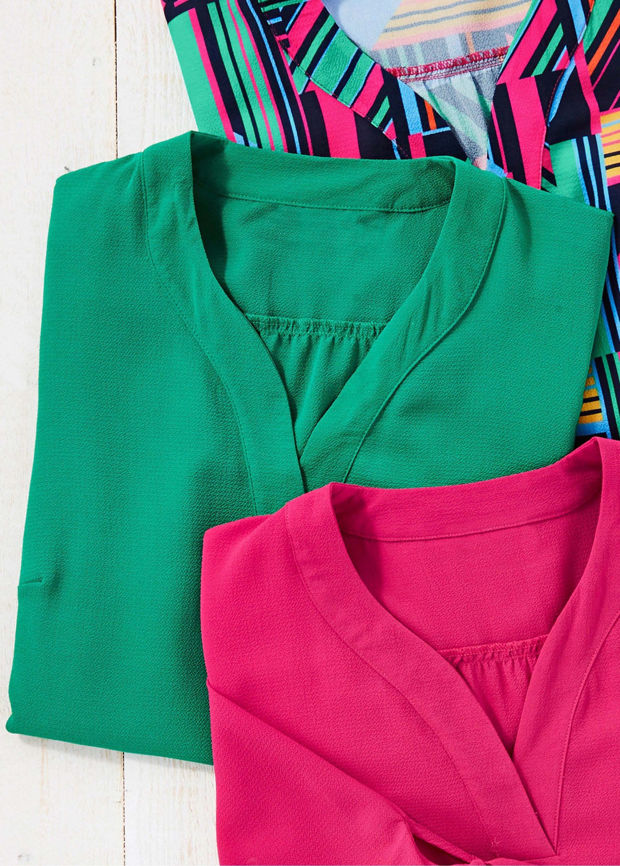 Vrouwentunieken zijn onmisbare stukken geworden in de hedendaagse mode. Verkrijgbaar in verschillende stijlen en maten, voor elk wat wils. Of je nu kiest voor een tuniek met mouwen voor koelere dagen of voor een tuniek met print om je outfit een vleugje kleur te geven, de mogelijkheden zijn eindeloos. In combinatie met jeans of leggings bieden deze tunieken een flatterend, elegant silhouet voor elke gelegenheid, van maandag tot zaterdag. Blouses en tunieken gaan ook perfect samen om een chique, casual look te creëren.