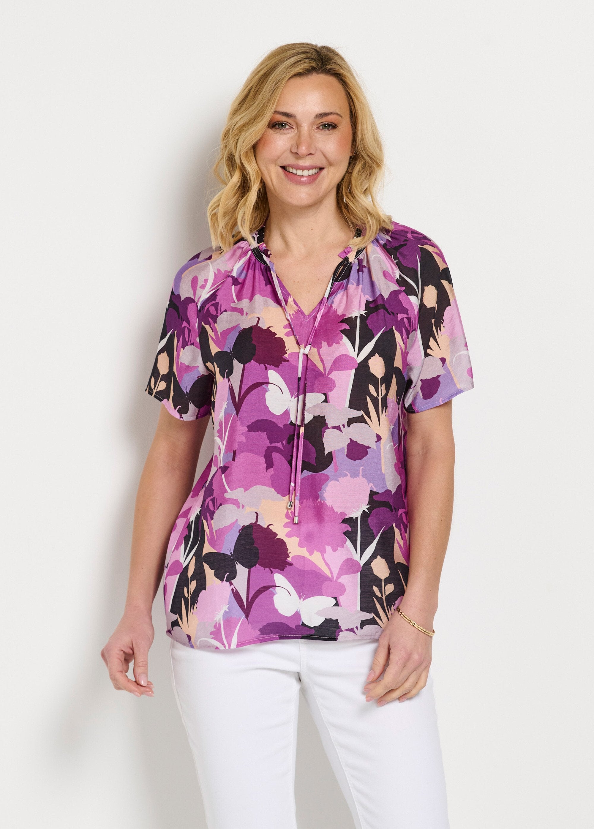 Gebloemde_voile_lange_tuniek_met_V-hals_met_ruches_Violet_et_noir_FA1_slim Gebloemde_voile_lange_tuniek_met_V-hals_met_ruches_Violet_et_noir_DO1_slim