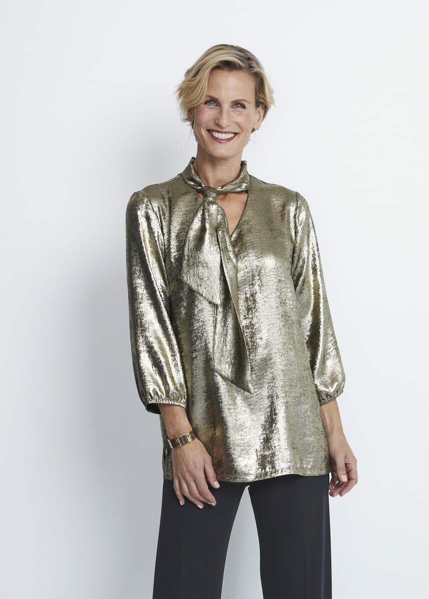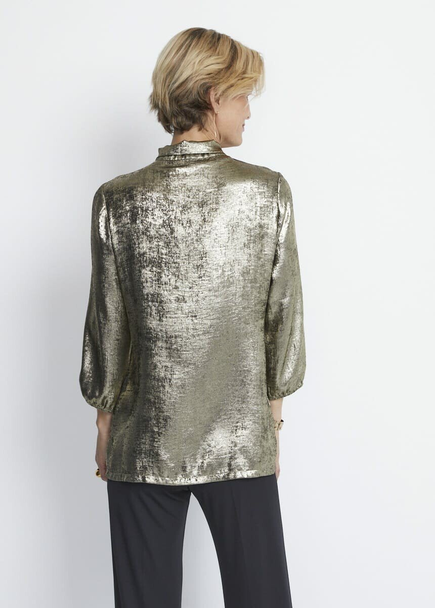 Tuniek_in_glanzende_gouden_stof_met_lavaliere_gouden_FA1_slim Tuniek_in_glanzende_gouden_stof_met_lavaliere_gouden_DO1_slim