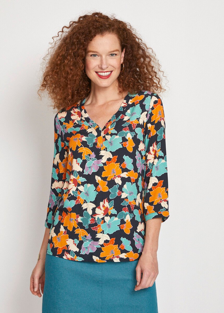 Tuniek_met_bloemenprint,_3/4_mouwen_Fond_marine_FA1_slim Tuniek_met_bloemenprint,_3/4_mouwen_Fond_marine_DO1_slim