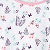 De pyjamatop met T-shirt is er in 3 versies: 2 effen met een patroon op de voorkant en 1 volledig bedrukt. Contrasterende biezen bij de ronde hals. Dubbelgestikte afwerking onderaan de lange mouwen en zoom.