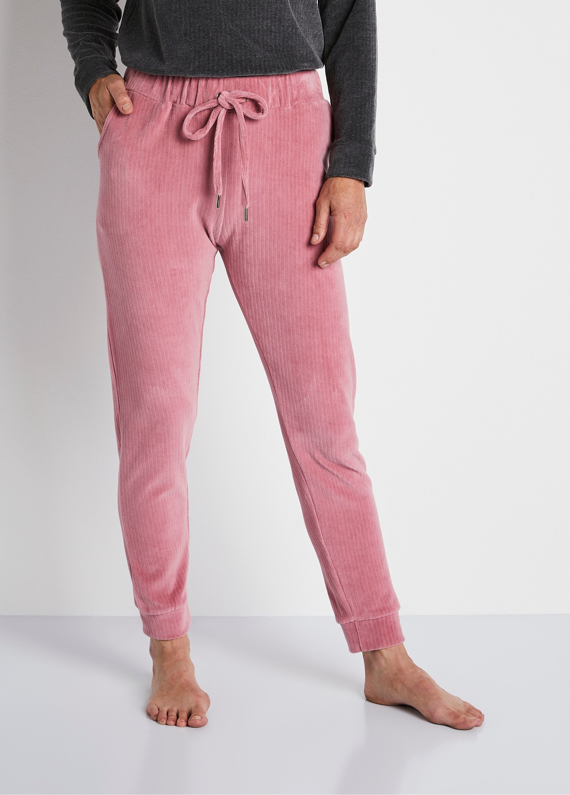 De corduroy damesbroek, verkrijgbaar in 3 kleuren, past perfect bij de STEREO sweatshirtpyjamatop... Als totaallook of in een contrasterende combinatie, het is aan jou om je pyjama samen te stellen om goed te slapen of gewoon om tijd door te brengen met goede cocoonmomenten thuis.