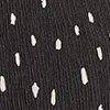 De korte jurk met stippen, een heerlijk retro model. Gekruiste wikkelhals vooraan. Uitlopende basis onder voor- en achterpanden. Stropdas van hetzelfde materiaal onder riemlussen. Gerimpelde elleboogmouwen.